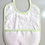 Babero con barra de panamá para poder bordar a punto de cruz y de suave rizo americano 500 gr/m2. El babero va ribeteado con tela vichy en Gris. “Colección Punto de Cruz”. Color “Blanco/Gris”. Fabricado por Martifanel en Portugal.
