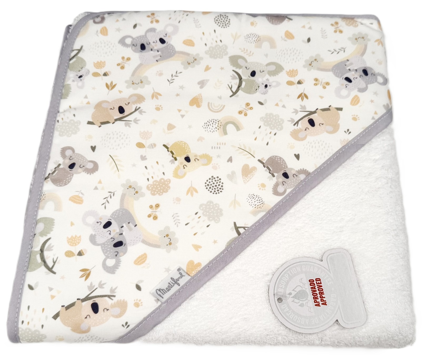 Babero con chupetero y lacito. Esponjoso al tener la parte trasera de suave felpa y la delantera decorado con piqué, tela estampada de estrellitas, puntilla y cinta a juego. Colección «Estrellitas». Color «Blanco/Gris». Fabricación en Portugal. Marca Martifanel.