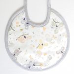 Simpático babero de la colección “Koala” ribeteado en beige. Parte trasera de felpa esponjosa y la delantera con la tela estampada de Koalas y ribeteado a tono. En 100% Algodón. Marca Martifanel. Fabricado en Portugal.