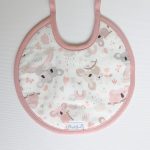 Simpático babero de la colección “Koala” ribeteado en azul petróleo. Parte trasera de felpa esponjosa y la delantera con la tela estampada de Koalas y ribeteado a tono. En 100% Algodón. Marca Martifanel. Fabricado en Portugal.