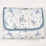 Cambiador de bebé ideal para viaje. Es un modelo muy práctico, plegable, cierre con velcro y cómodo para llevar. Su interior impermeable y acolchado, es de muy fácil limpieza, y además proporciona a tu bebé el confort necesario para cualquier superficie. Fabricado por Martifanel en Portugal con materiales de primera calidad y una confección esmerada. Tela exterior con estampados graciosos en 100% algodón y ribeteado a tono. Posibilidad de fabricarlo más grande si fuese necesario.