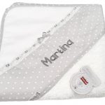 Capa de baño de bebé de 80 cm. Colección “Estrellitas” en color “Blanco/Azul”. Al llevar capucha, permite secar la cabecita de tu bebé con rapidez y evitar coger frío. Es posible hacerla en otros tamaños. La toalla de estupenda calidad lleva capucha en una esquina decorada con piquet en la parte superior y en la inferior una barra de la tela de estrellitas, puntilla, cinta y lazo a juego. Fabricado por Martifanel en Portugal, en 100% algodón ultra suave, confeccionado con tejidos hidrófilos y antipilling para evitar la formación de bolitas. Fabricación en Portugal. Marca Martifanel.