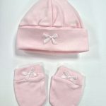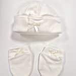 Suave conjunto de gorrito bebé con manoplas a juego. Ideal para recién nacidos para sus primeros días en el hospital. Marca Martifanel. Fabricado en Portugal.