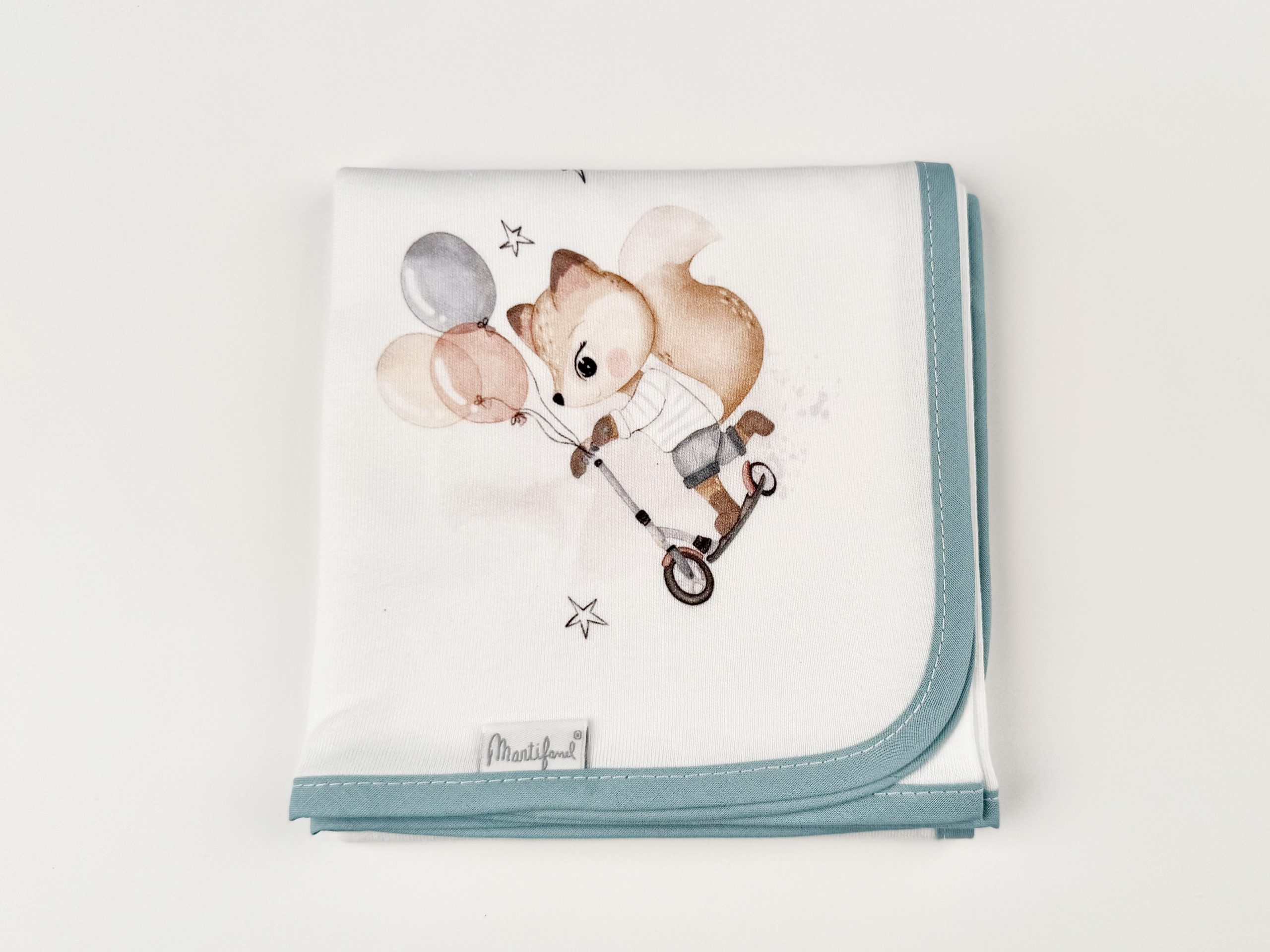 Gasa babita estampado Digital «Colección Zorrito» Color «Blanco/Azul Petróleo»