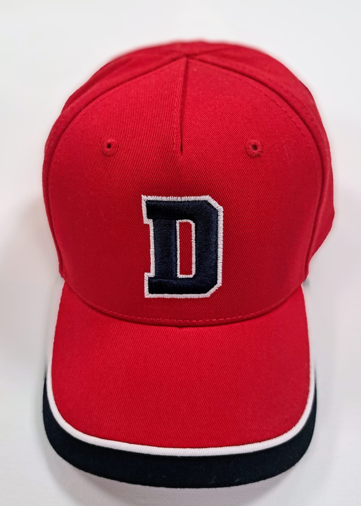 Gorra infantil personalizada con inicial. Color Rojo, con detalle en solapa marino y blanco. Bordado en marino y rojo. Fabricada en 100% algodón orgánico. Cierre ajustable. Talla entre 3 y 12 años dependiendo de la circunferencia de la cabeza, este modelo es de 54 cm. Orificios bordados de ventilación. Se personaliza en el panel delantero de la gorra.