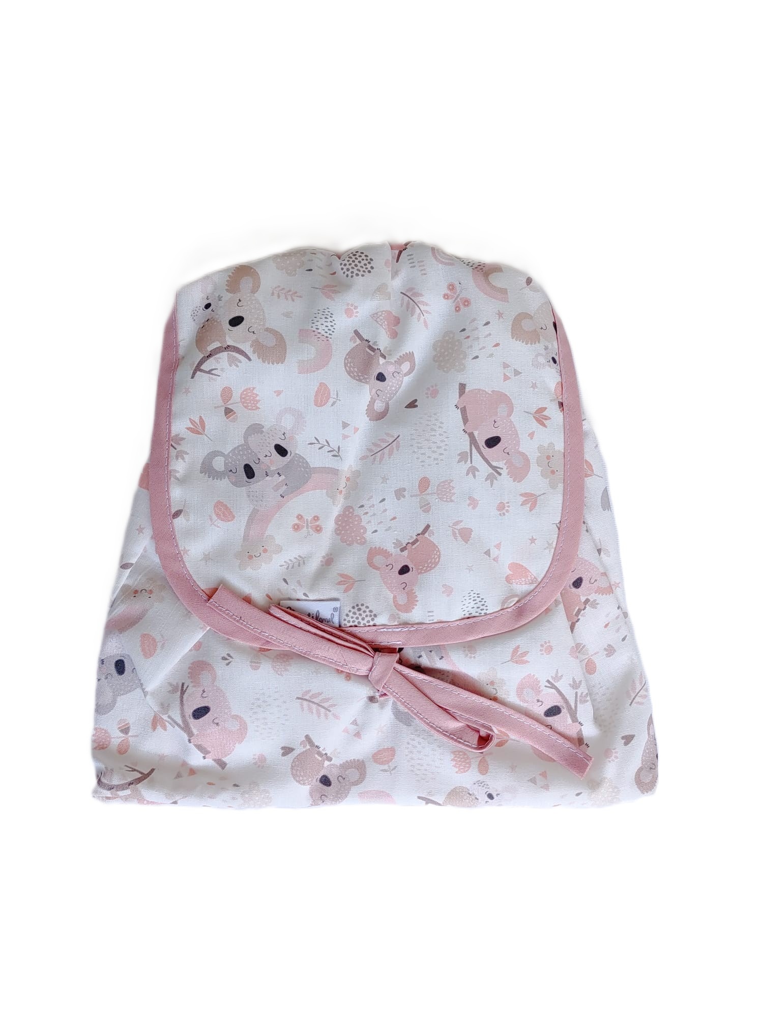 Divertida mochila para bebé colección «Koala» en color «Maquillaje». Diseñada con un estampado gracioso de Koalas a tono, ideal para ir de excursión, llevar la merienda al parque o la muda a la guardería, hasta los 5 años aproximadamente. Se puede llevar de mano o colgada en la espalda.