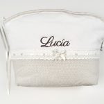 Neceser para bebé. Colección “Topitos”. Color “Blanco/Azul”. Bolsita para guardar los productos de higiene de tu bebé confeccionada y bordada con mucho mimo. Para uso en casa o para llevar todo lo que necesites. Fabricado por Martifanel en Portugal.