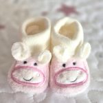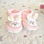 Par de patucos para bebé en Blanco con Fucsia. Ideal para mantener calentitos los pies de tu bebé. Marca Martifanel. Fabricado en Portugal.