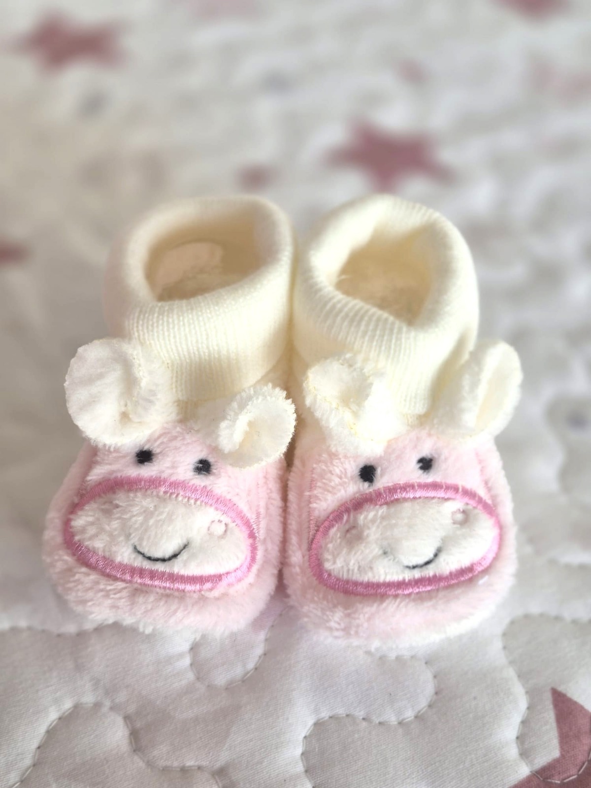 Par de patucos para bebé en Blanco con Rosa. Ideal para mantener calentitos los pies de tu bebé. Marca Martifanel. Fabricado en Portugal.