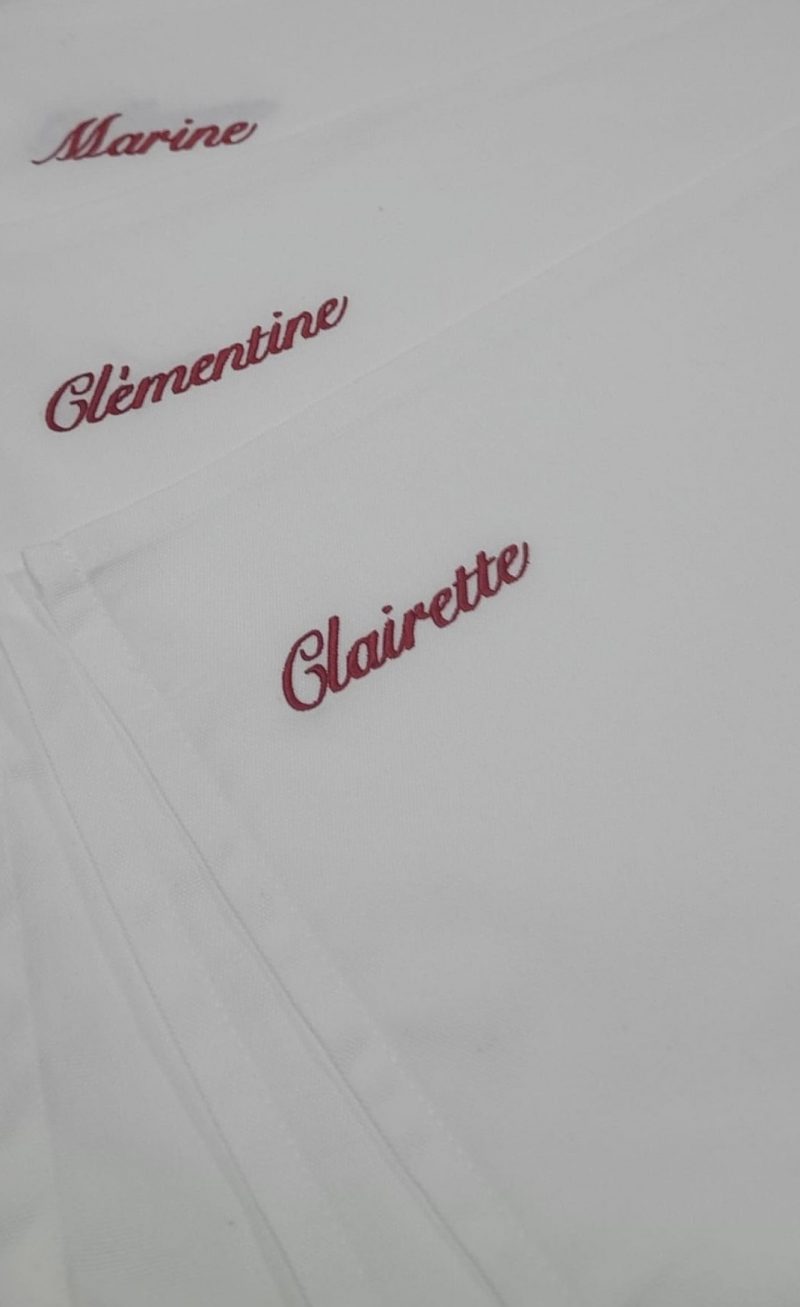 Servilleta de algodón o lino, varios colores, personalizadas con nombre, apellido, logo, etc, para cualquier tipo de evento, bautizos, comuniones, bodas, cenas familiares. Pida presupuesto.