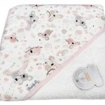 Capa de baño de bebé de 80 cm. Colección “Koala” en color “Blanco/Azul”. Al llevar capucha, permite secar la cabecita de tu bebé con rapidez y evitar coger frío. Es posible hacerla en otros tamaños. Fabricado por Martifanel en Portugal, en 100% algodón ultra suave, confeccionado con tejidos hidrófilos y antipilling para evitar la formación de bolitas. La tela en la capucha va estampada con graciosos koalas y ribeteada a tono.