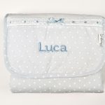 Capa de Baño 1 metro con una barra de panamá para poder bordar a punto de cruz o si prefieres te la podemos bordar a máquina. La toalla va ribeteada con tela de topitos en gris y encima lleva una pequeña puntilla. “Colección Punto de Cruz”. Color “Blanco/Gris”. Fabricado por Martifanel en Portugal.