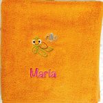 - La personalización se realiza en la parte inferior derecha de la toalla, centrada debajo del motivo del Avestruz